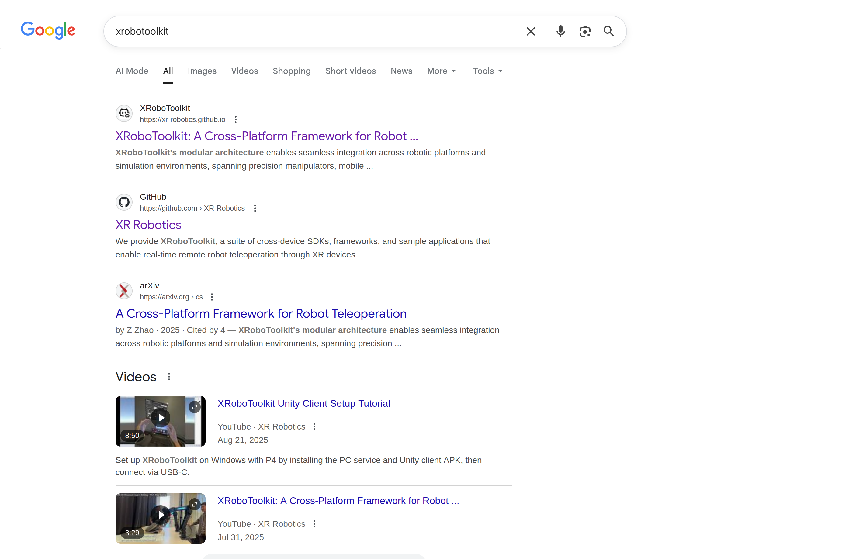 Type “xrobotoolkit” in the search bar and select the GitHub page XR-Robotics.