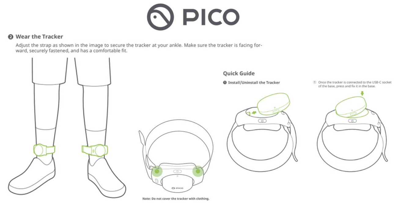 Strap one PICO motion tracker to your left ankle and one to your right ankle. Scrunch down any baggy clothing so the trackers are visible. Make sure the side with the light indicator faces up.