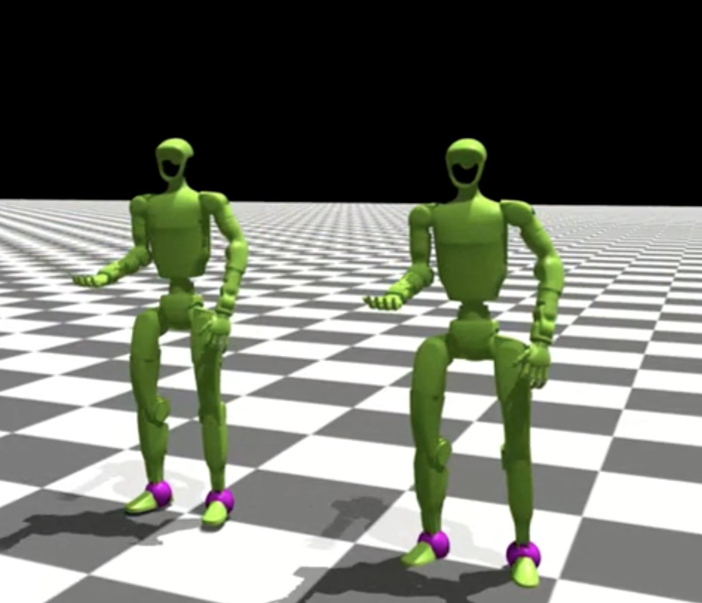 Purple markers highlight contact points with the ground